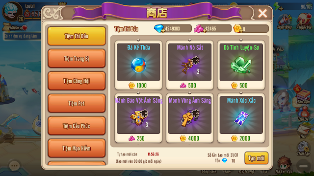 cấp, cường hóa trang bị, cải biến thuộc tính, tiến hóa pet và vũ khí. Hoạt
